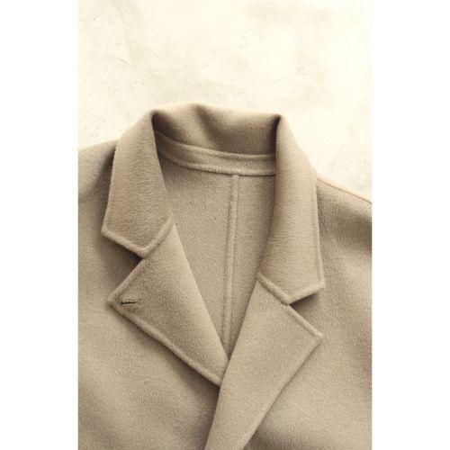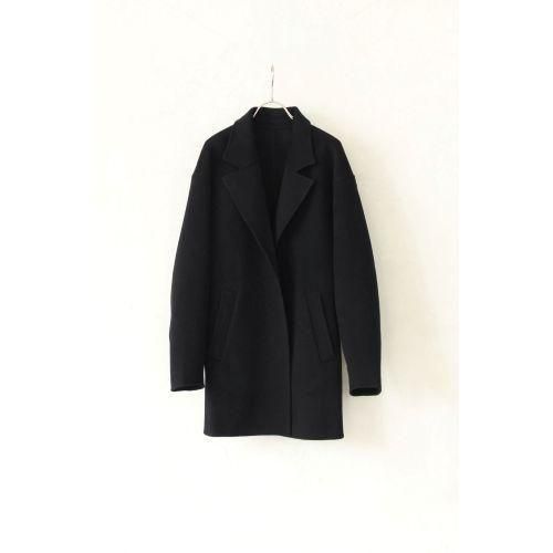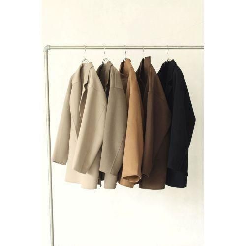 ウール素材を特殊ミシンで縫製し、一重に仕立てたテーラーコートです