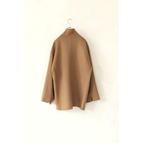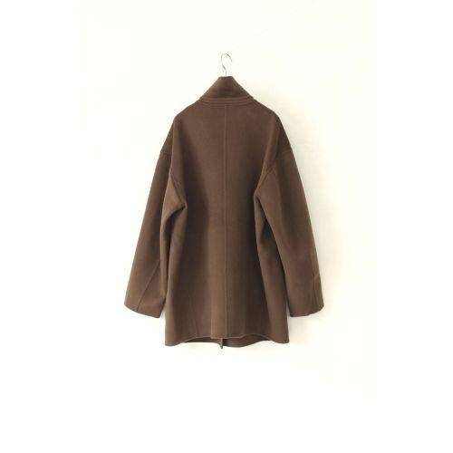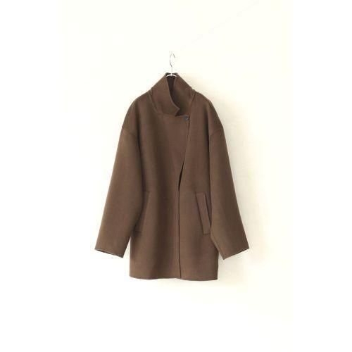 衿下のボタンをとめてスタンドカラーとしてオープンにテーラーコートとして